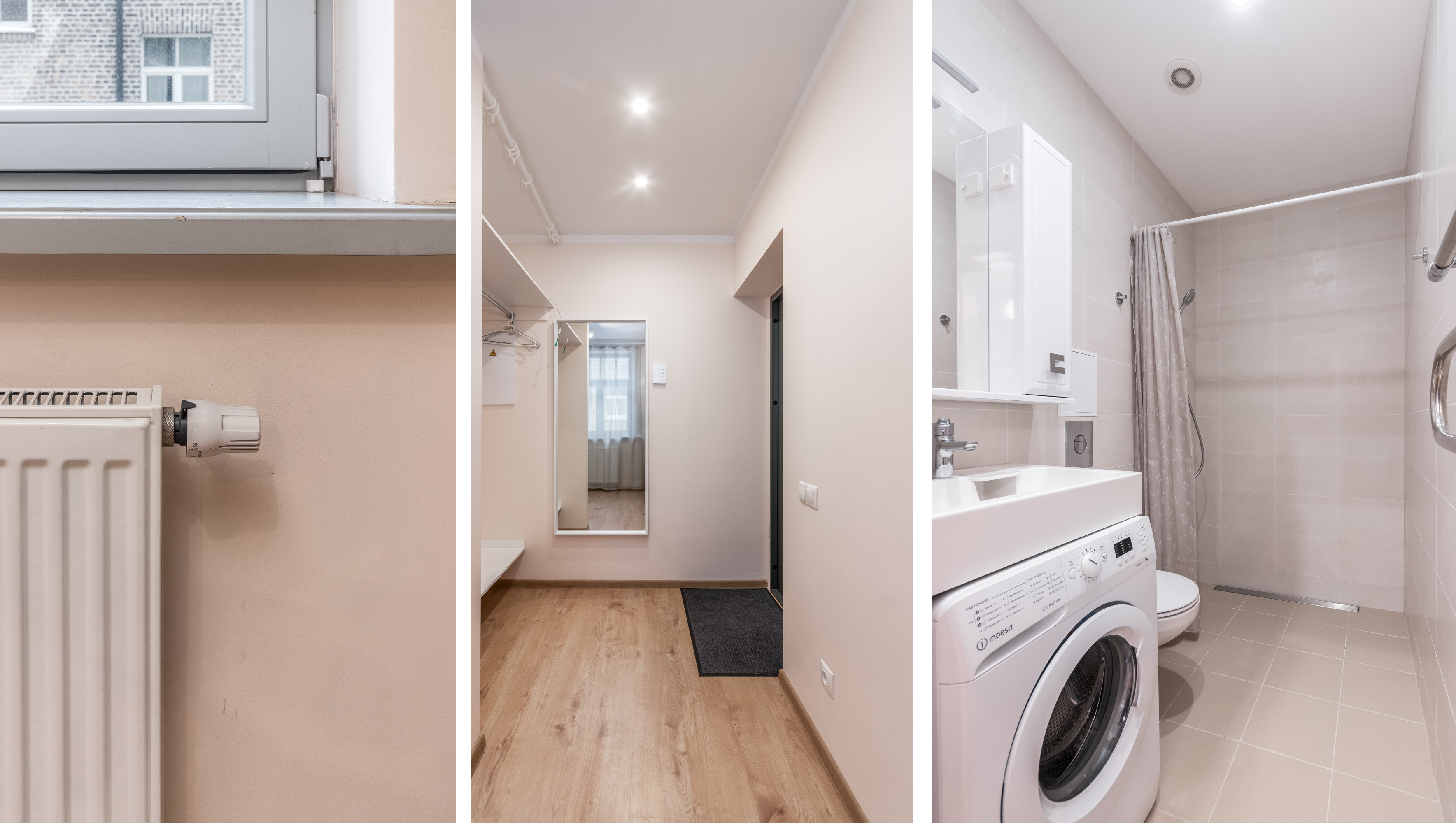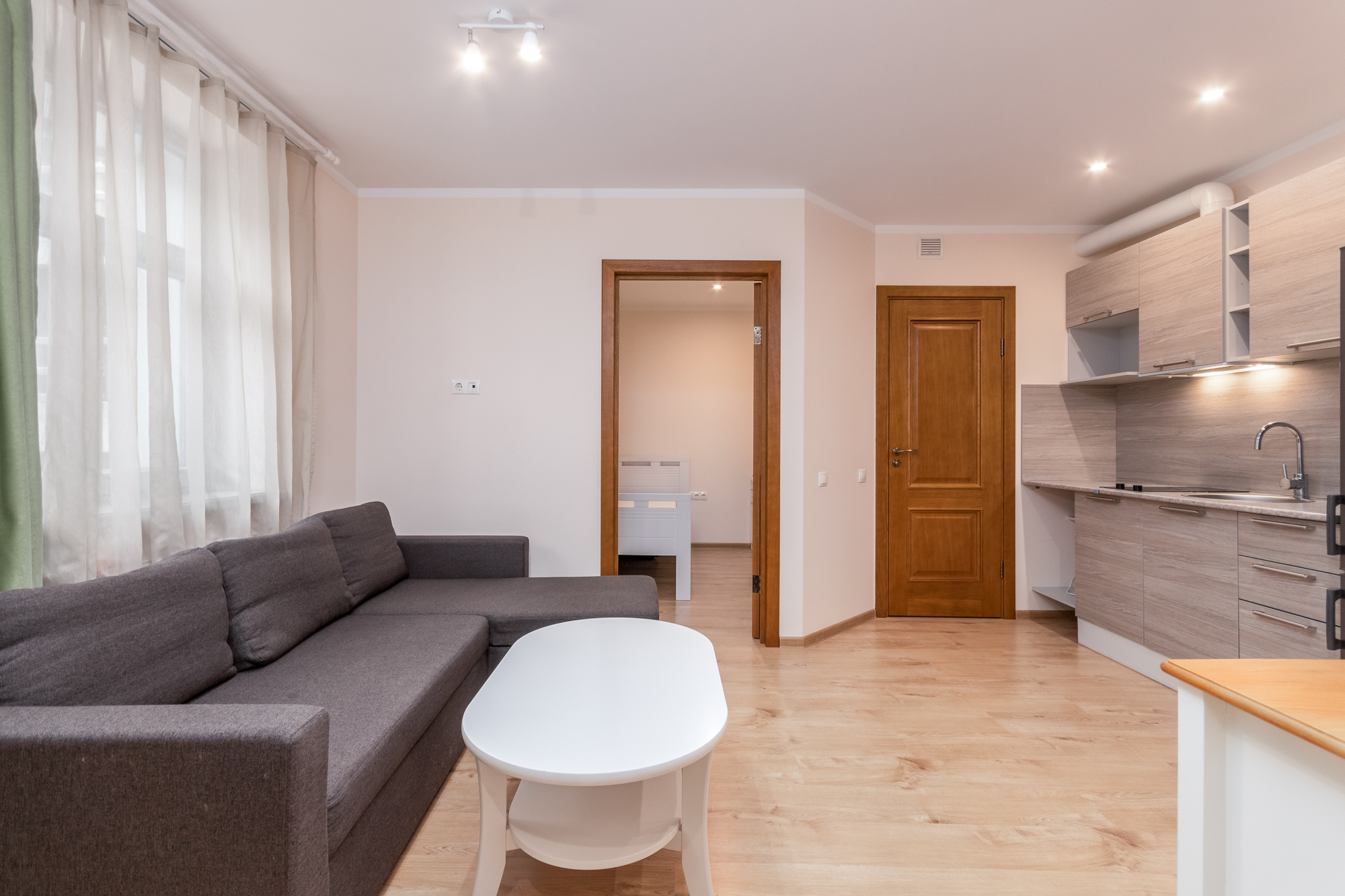 В первых двух домах по улице Спаргелю доступны для приобретения компактные квартиры, подходящие для горожан, площадью от 22 м2 до 55 м2, которые не требуют больших дополнительных вложений после их приобретения. В квартирах светлый, уютный и недавно обновленный интерьер, в комнатах – мебель в лаконичном стиле, а также светильники и шторы в тон. Кухни оборудованы встроенной мебелью и бытовой техникой.